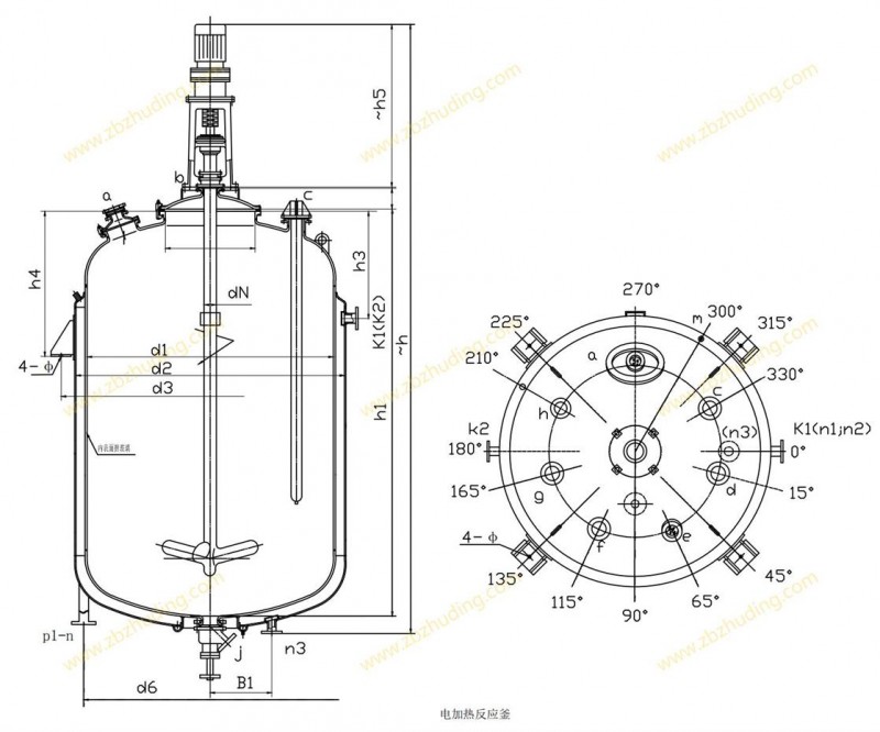 K50L-K5000L電加熱搪玻璃反應釜(電加熱搪瓷反應釜)設計圖紙及參數(shù)如下所示: